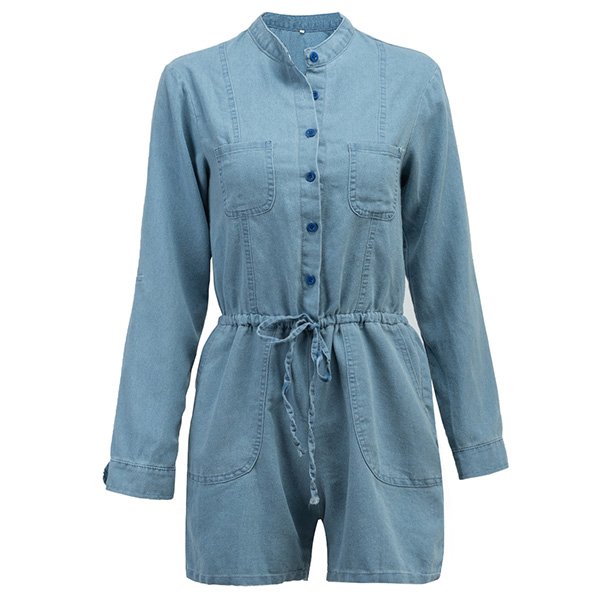 Hey,girls,it is a good chance to update your image with this denim romper! It is finished with long sleeve,
