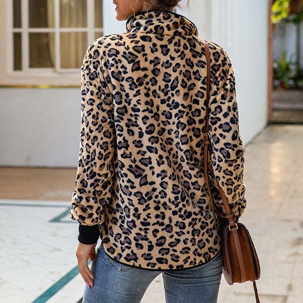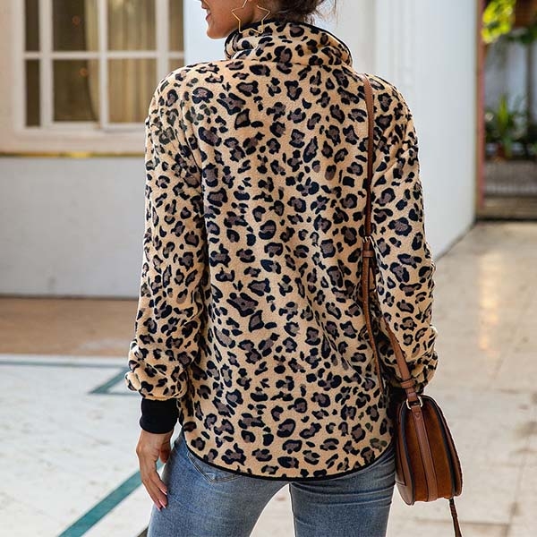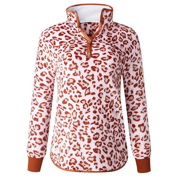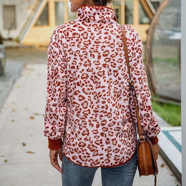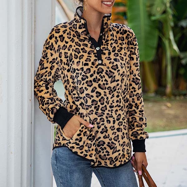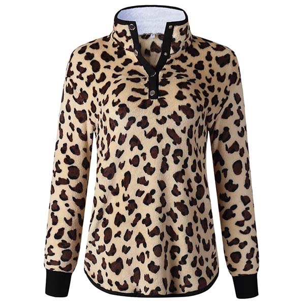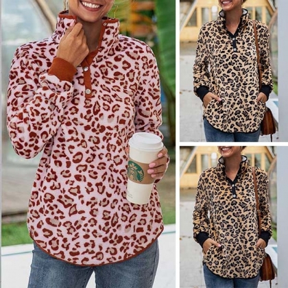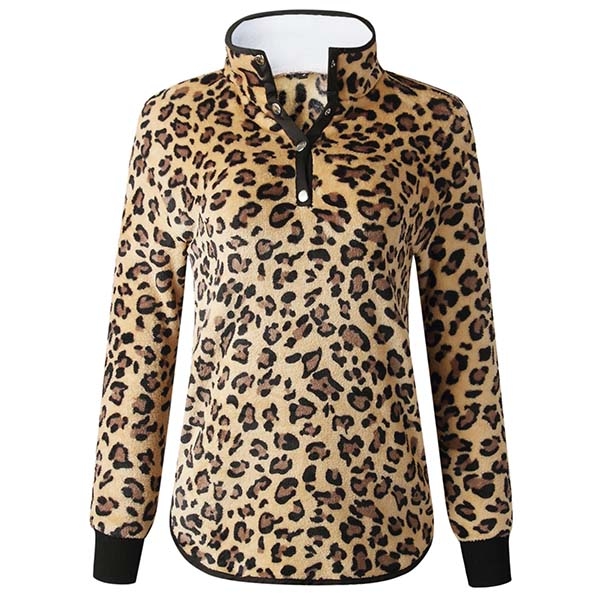 Invite this sweatshirt to your wardrobe to get prepared for the cold days. The leopard printed details make it look so eye-catching and stylish. Finished with long sleeve and stand collar design,this piece can ensure you a warm and comfortable day with its soft and cozy fabric.
