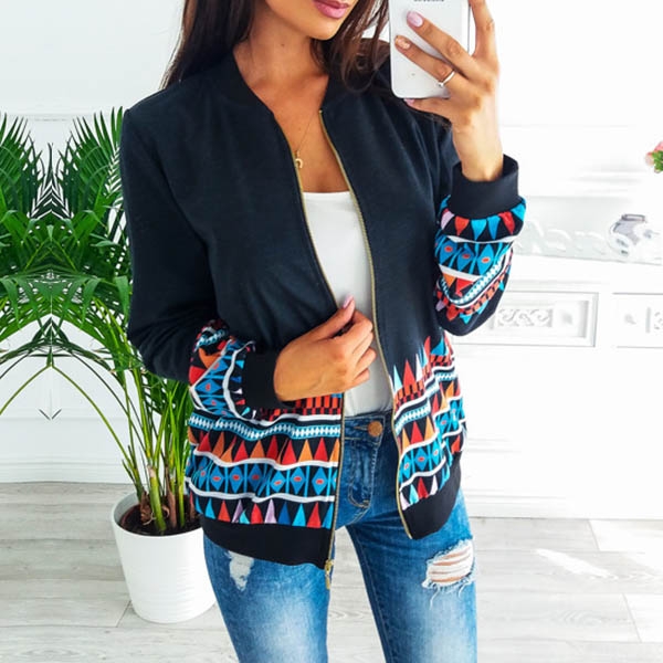 This jacket is finished with long sleeve,stand collar and front zipper closure,which can keep you warm