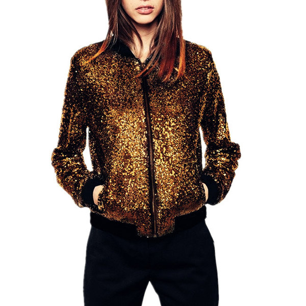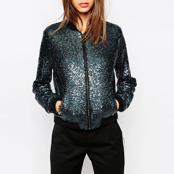 You can easily grab more attention when you wear this sequin jacket. Finished with long sleeve,stand collar and