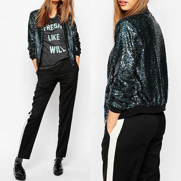 a fit silhouette,this jacket can keep you warm while maintaining your style. Moreover,the sequin details make