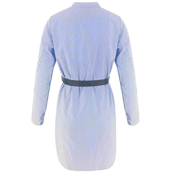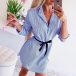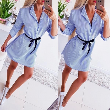 When you don't know what to wear for your busy workdays,you can just make your eyes focused on this shirt dress. Designed with striped element,