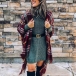 Fashion Long Sleeve Tassel Hem Plaid Knit Shawl Cardigan