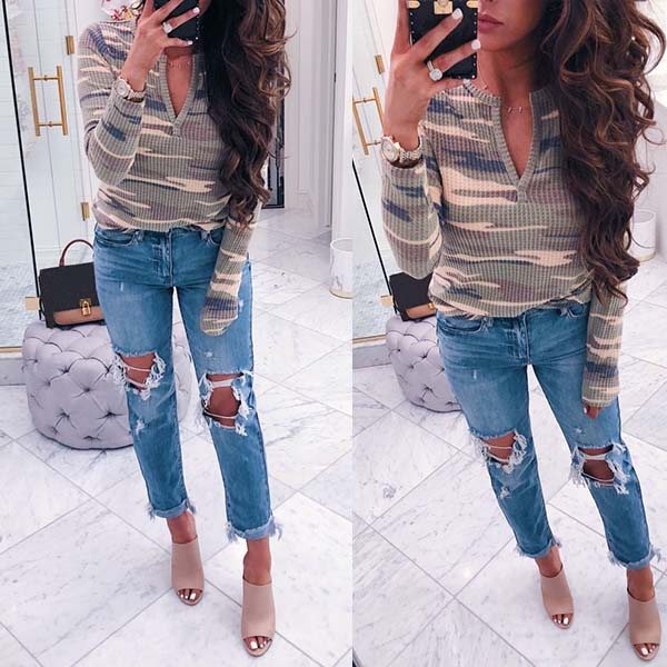 offer you a comfortable day. And the camouflage print design will boost its charm. Fit silhouette