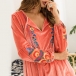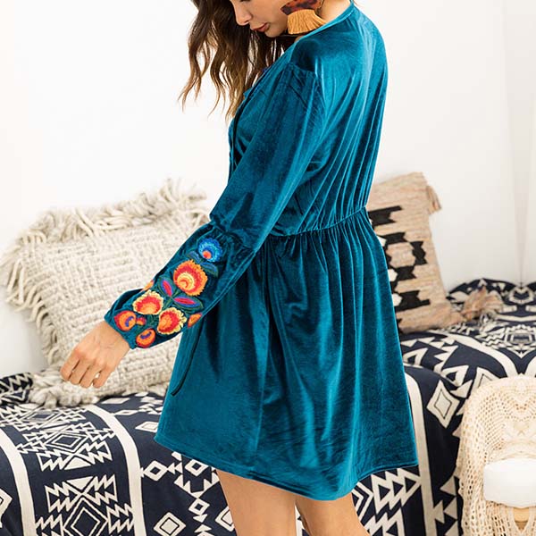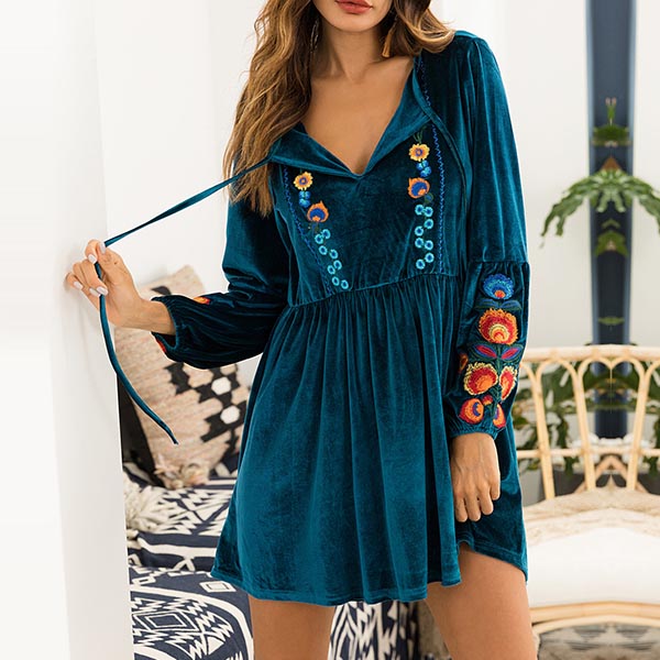 The v-neck and embroidered details will boost the charm of this dress,while the soft and breathable fabric can