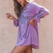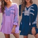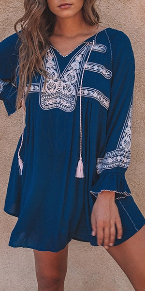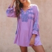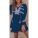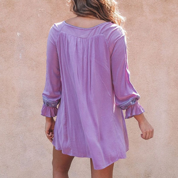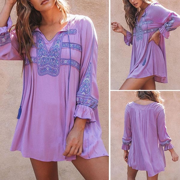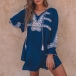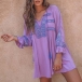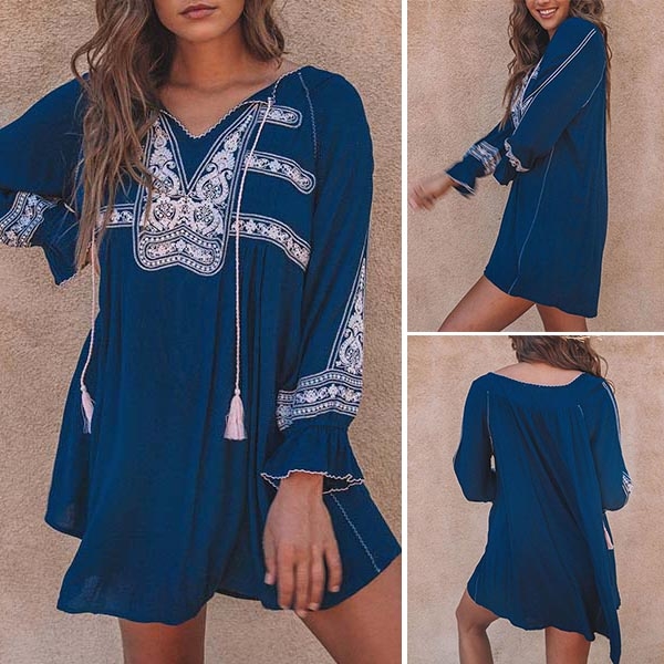 Fashion Long Sleeve V-neck Embroidery Spliced Loose Dress