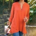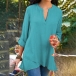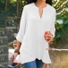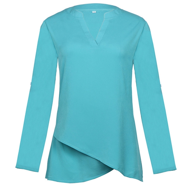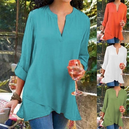 Fashion Long Sleeve V-neck Irregular Hem Loose T-shirt