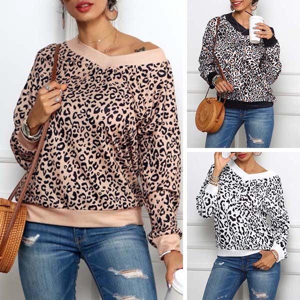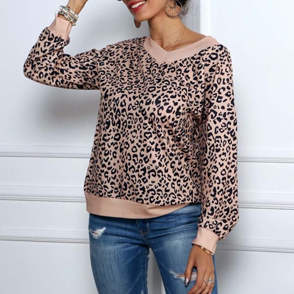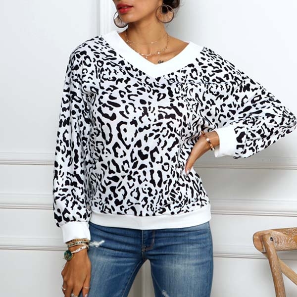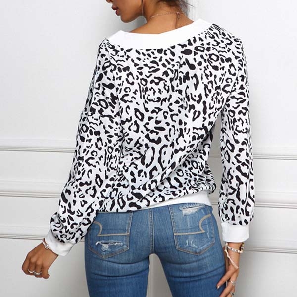 leopardtröja? Den är färdig med långärmad och v-ringad design, det mjuka och andningsbara tyget kan