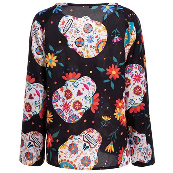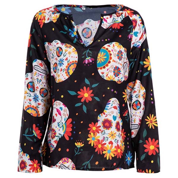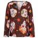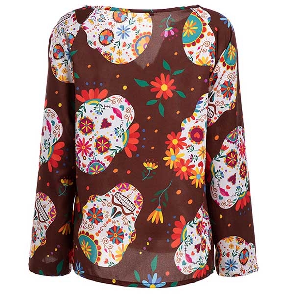 Add a dash of colorful flavor to your wardrobe with this blouse. Its chic and eye-catching printed pattern