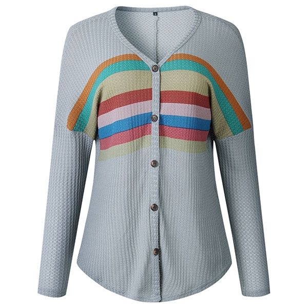 Fashion Long Sleeve V-neck Single-breasted Cardigan