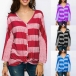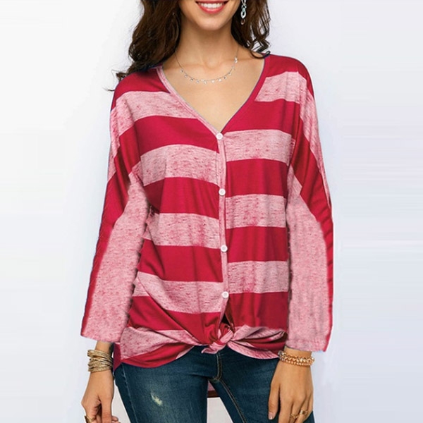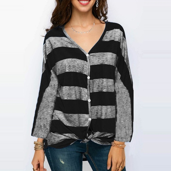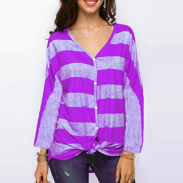 with striped element,stylish yet popular. Finished with long sleeve,v-neck and single-breasted design,