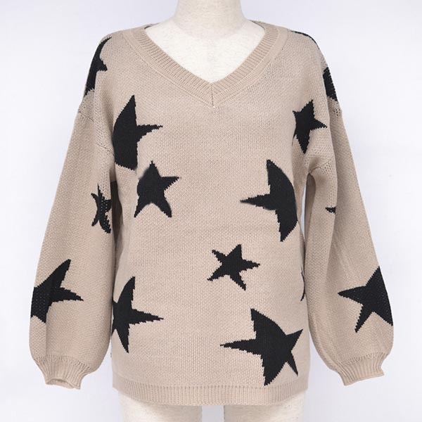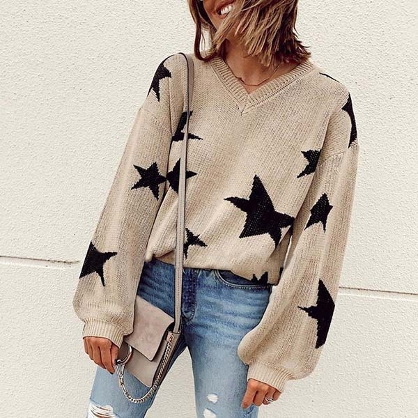 weather starts to get cold. It is finished with long sleeve and v-neck design,the star pattern