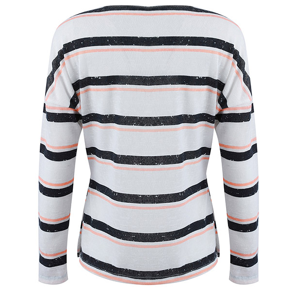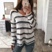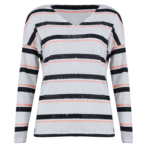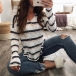 Greet the arrival of the autumn season with this cozy yet stylish knit top. Designed with striped element,