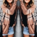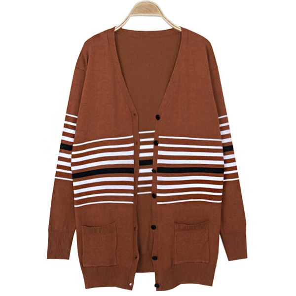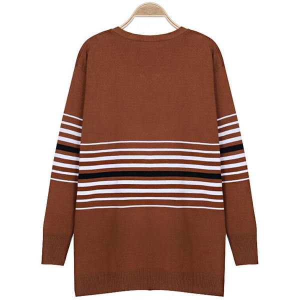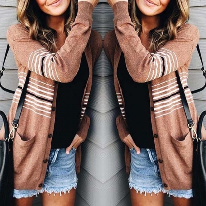 Give your wardrobe a seasonal update by adding this knit cardigan. The striped spliced design