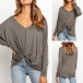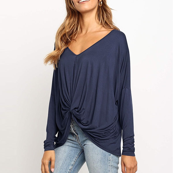 v-neck and twisted hem design,this piece can easily enhance your fashion level. Try to match with your tight pants to finish a fashionable daily look.