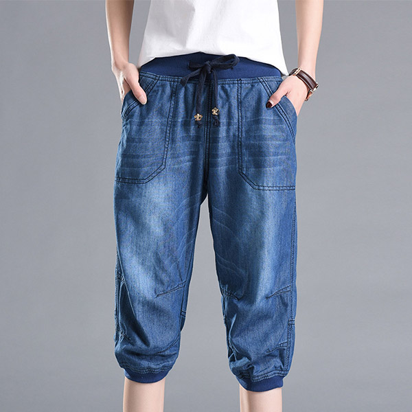 Denna capribyxor i jeans är gjorda av ett mjukt och andningsbart tyg, tillsammans med låg midja och en silhuett med avslappnad passform, som vet hurför att ge dig en bekväm dag.Behöver bara matcha med en Enkel t-shirt, så att du kan ha en avslappnad men ändå moderiktig stil.
