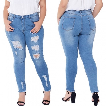a fit silhouette,this piece can showcase your slender legs. Moreover,the ripped details will make