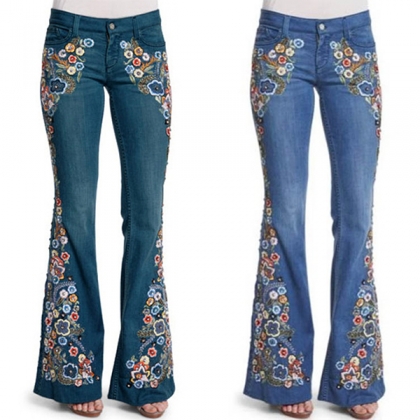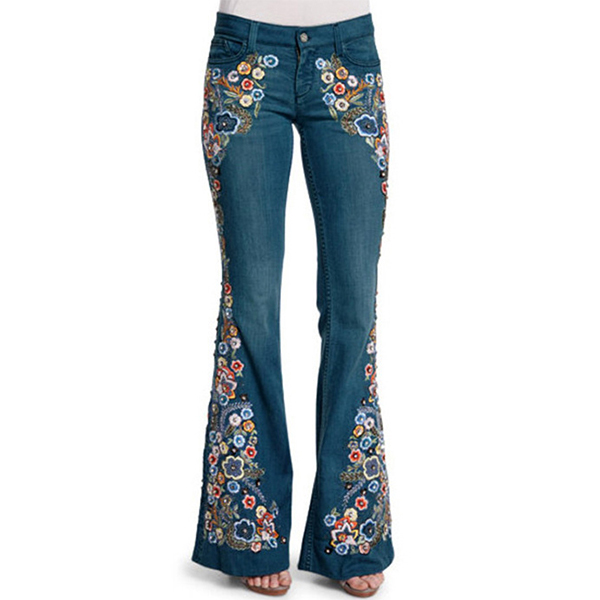 Alla behöver jeans, du är inget undantag. Den här jeansbyxan är färdig med en medelhög midja och en passande silhuett, vilket framhäver din slanka figur. Den tryckta designen fångar enkelt människors uppmärksamhet. Även om du bara kombinerar den med en enkel t-shirt ser du tillräckligt modern ut!
