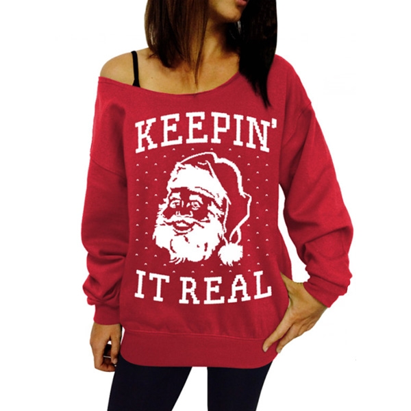 feature a loose fit with an oblique neckline and Christmas print for lending trendy touch to your