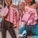 this piece look so distinctive and stylish. Red long tassel drawstring can add a little cute to your feminine