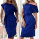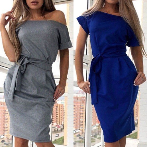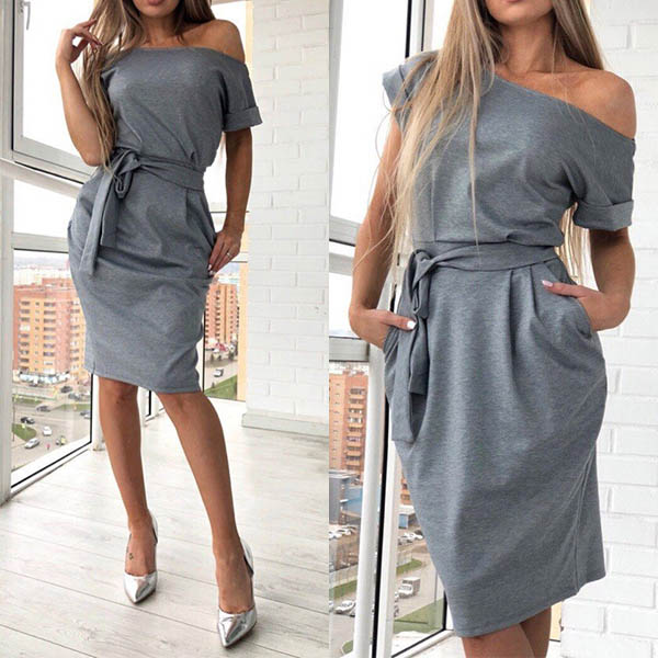 oblique shoulder and one waistband tie at the waist.The pockets at the two side of the dress can hold