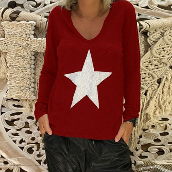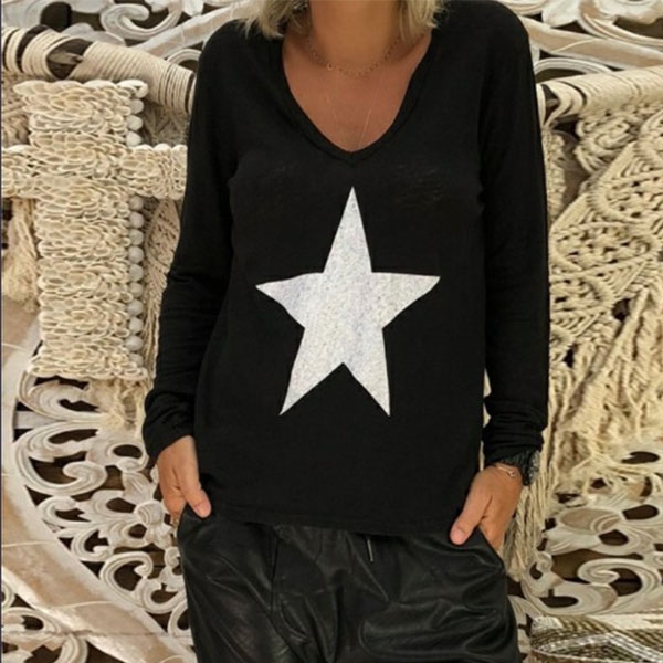Moreover,the pentagram printed pattern design breaks the simple and dull design style. Try to match with your jeans to finish