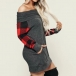 Plaid spliced design makes it look not so simple and dull,while the boat neck