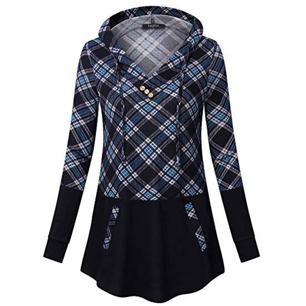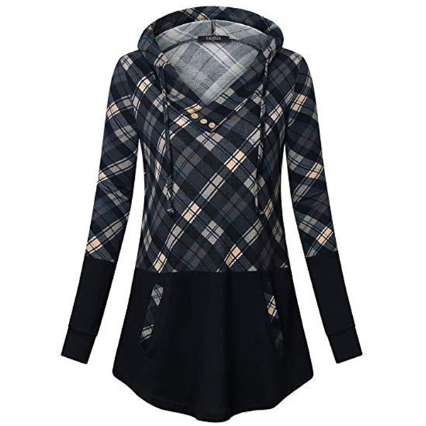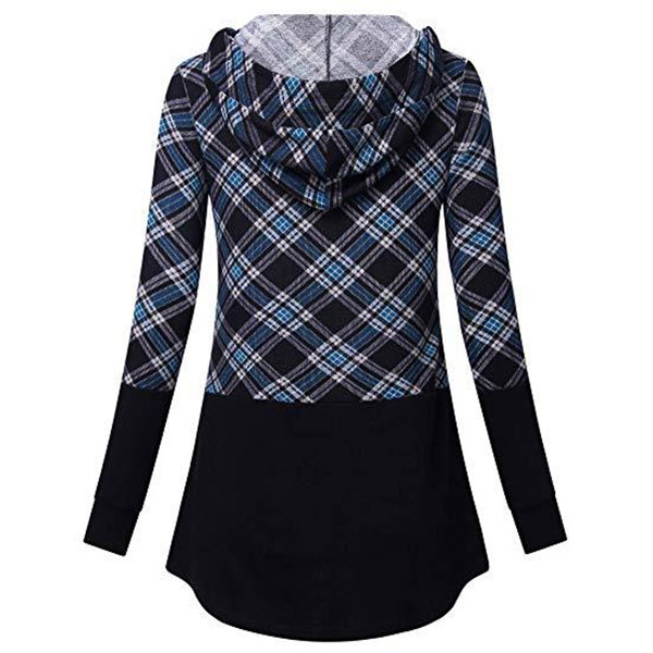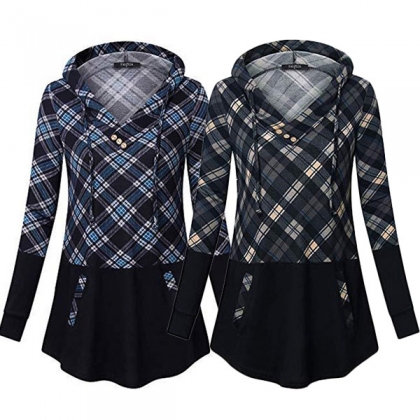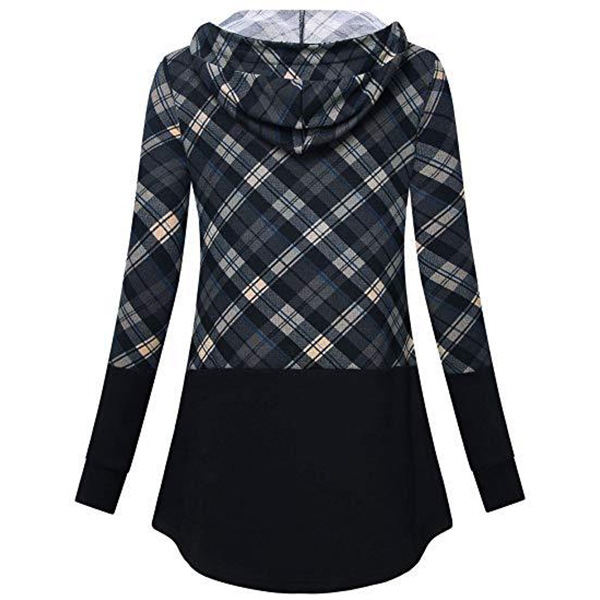The plaid spliced element will make it look more attractive. Finished with long sleeve and hooded silhouette,