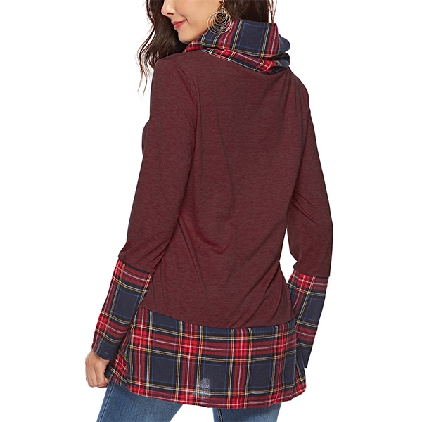 This t-shirt which is designed with plaid element design will enrich the design style,and the cowl neck