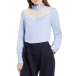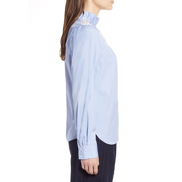 neckline with button closure, long sleeve with button closure cuff, wearing it to office with matching stripe pants,