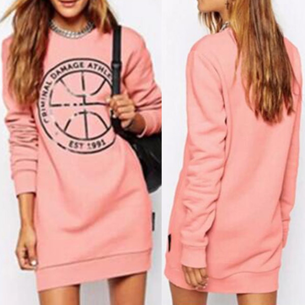This sweatshirt dress comes with a sweet yet stylish pink tone,decorated with chic printed pattern,