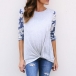 breathable fabric can offer you a comfortable day,while the printed spliced long sleeve and knotted hem