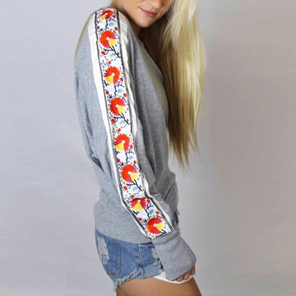 this simple and stylish sweatshirt can offer you a comfortable day. And the printed spliced design at