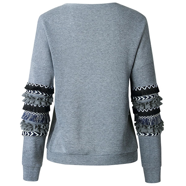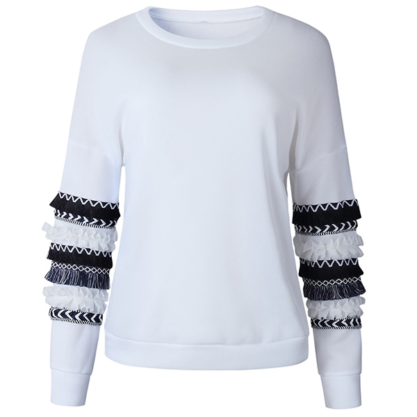 with long sleeve and round neck design,simple,cozy,stylish and all-match. And the printed spliced design