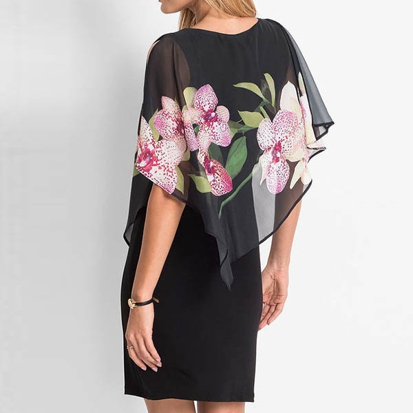 be solved if you have this delicate dress in your team. The printed spliced and shawl-style design