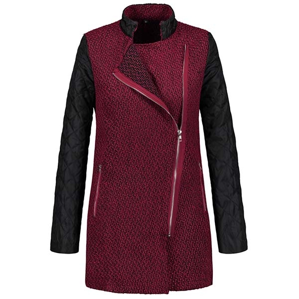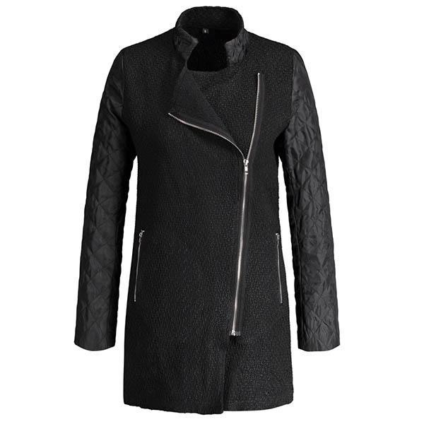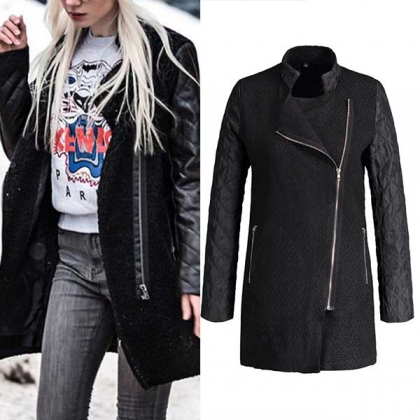 design will enrich the design style. Finished with long sleeve,stand collar and oblique zipper design,this coat