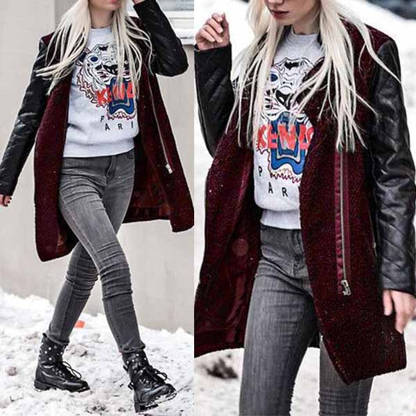 This coat would be your timeless wardrobe staple in these cold days. Contrast color and PU leather spliced