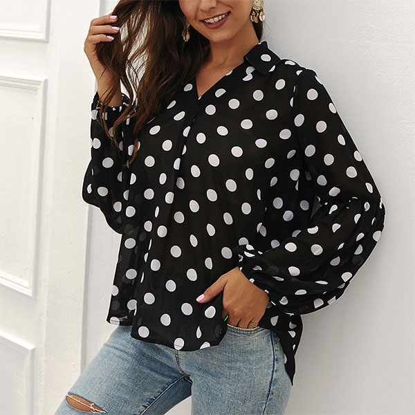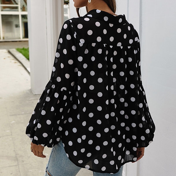 The dots printed details and puff sleeve design make this piece look so attractive and distinctive.