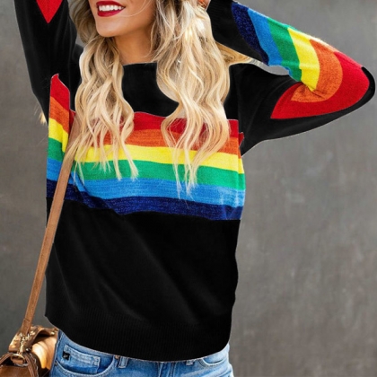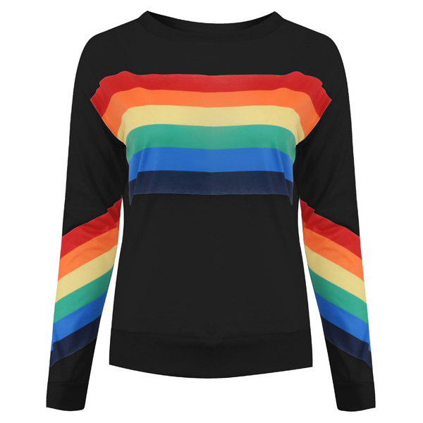 När det kommer till en avslappnad och avslappnad stil, är tröjan det första som man tänker på. Så varför inte fokusera på det här stycket? Den regnbågsrandiga skarvade designen gör att den ser mer attraktiv ut. Färdig med lång ärm, rund hals och mjukt tyg, kan denna mysiga men ändå snygga sweatshirt matchas med olika stilar.
