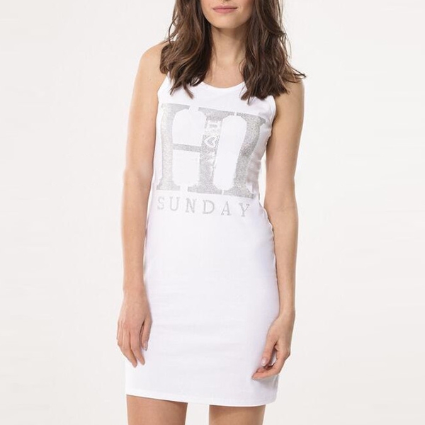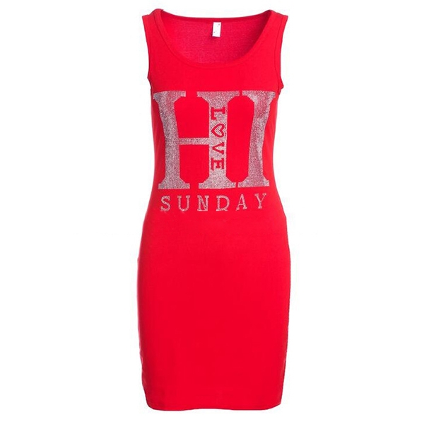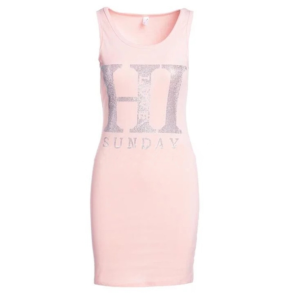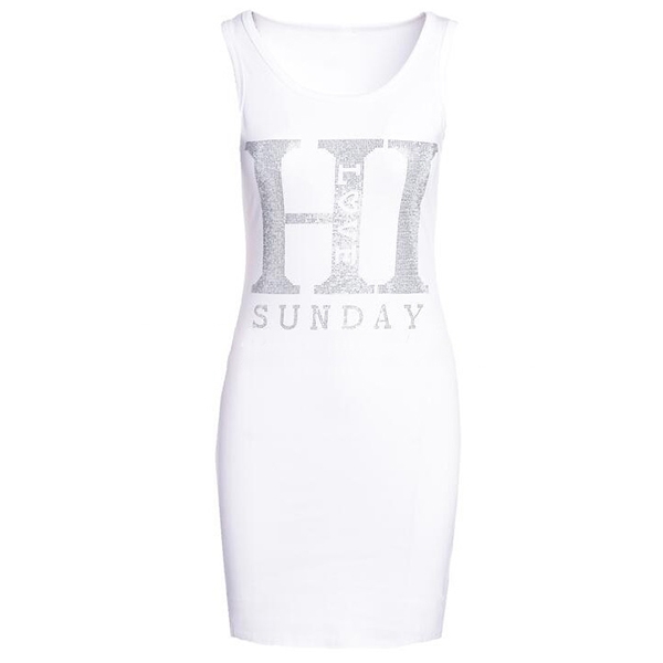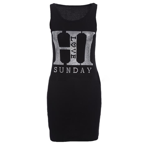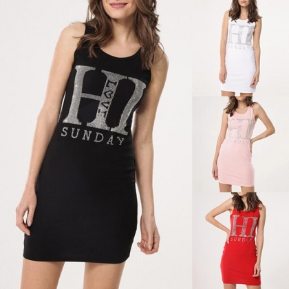 As for these summer days,this sleeveless dress is a best choice.The rhinestone spliced letters
