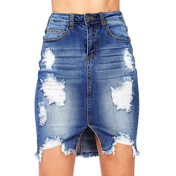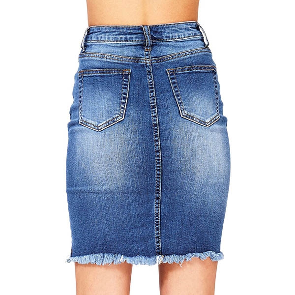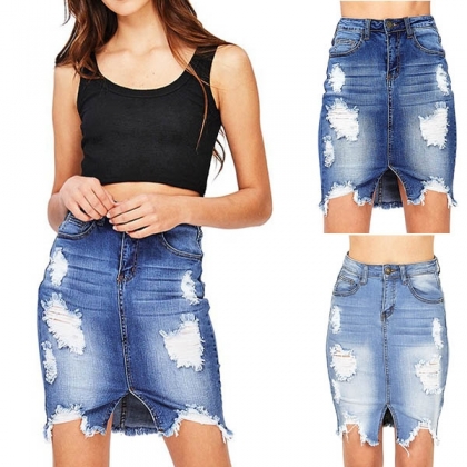 side pockets and ripped design.Frayed hemline and one zipper fly at the front of the denim dress.