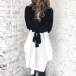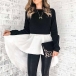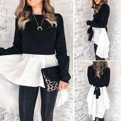 Rock a trendy yet feminine look in this long sleeve top! Craft from fit-and-flare silhouette with a spliced contrast