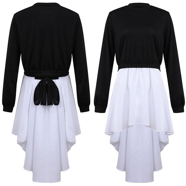 color high-low hem to show personality dress up, detail with self-tie sash at the back for a feminine polish,