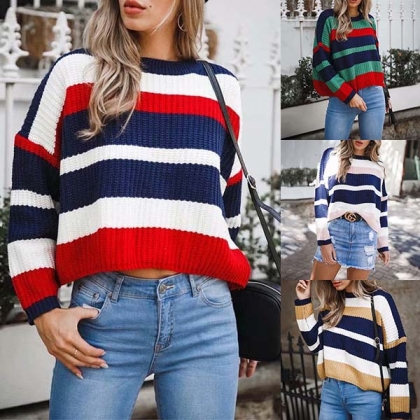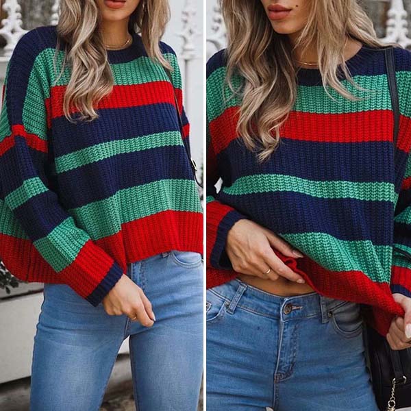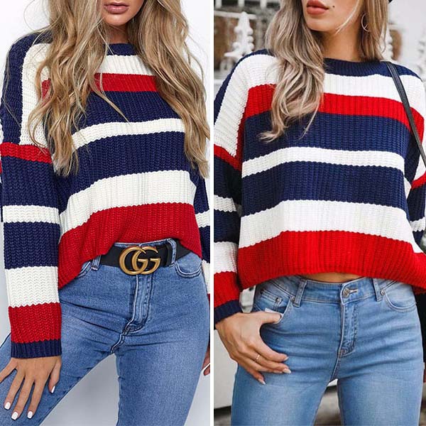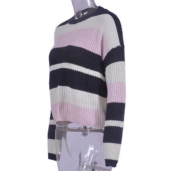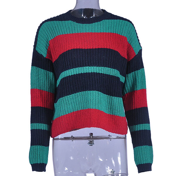 with round-neck,long sleeve and multi colors.The sweater is simple and concise without any rest of decoration.
