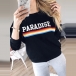 pullover feature a relaxed fit, round neckline, “paradise” graphic and rainbow print at the front,