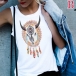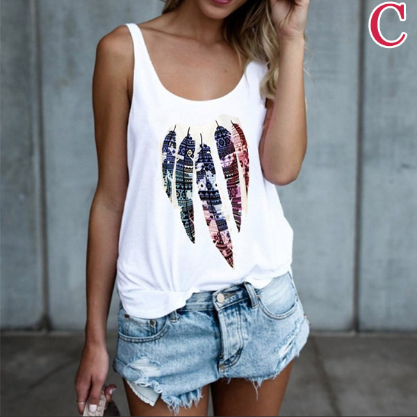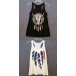 a creative pattern print at the front, a round neckline, a sleeveless cut with dropped armholes,