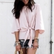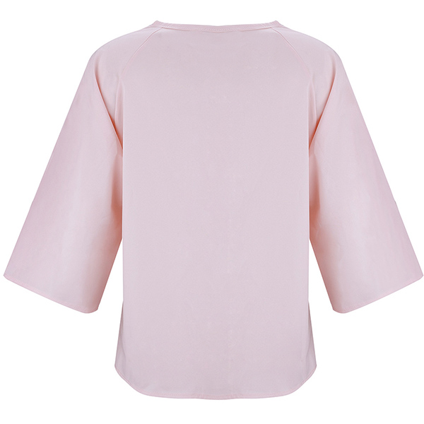 a relaxed silhouette with a dolman sleeve, round neckline and an open seam detail on the front,