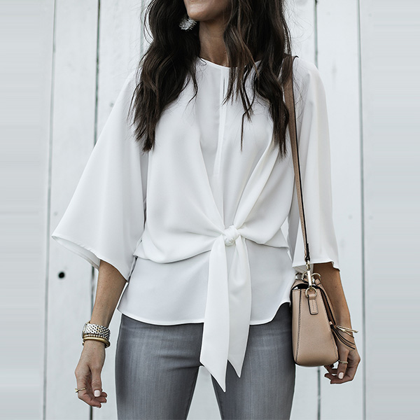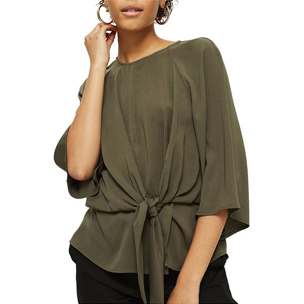 a tie detail on the front lends a trendy finish to this chic top. Suit a fitted jeans or shorts to complete