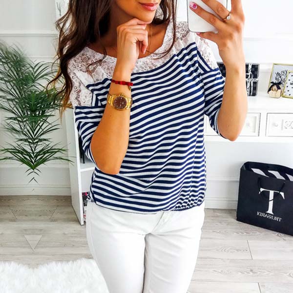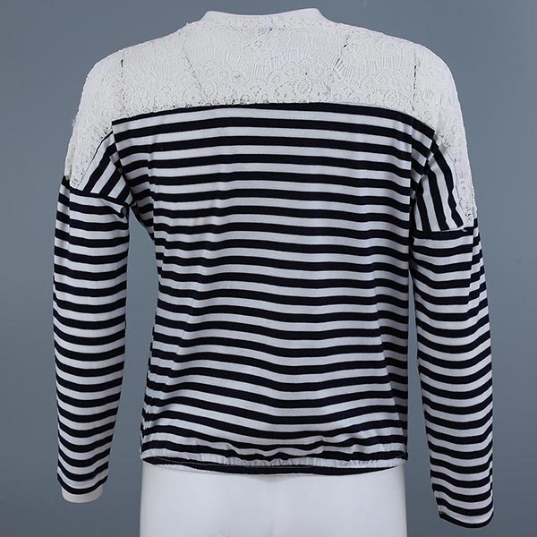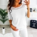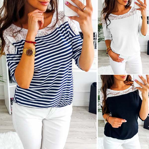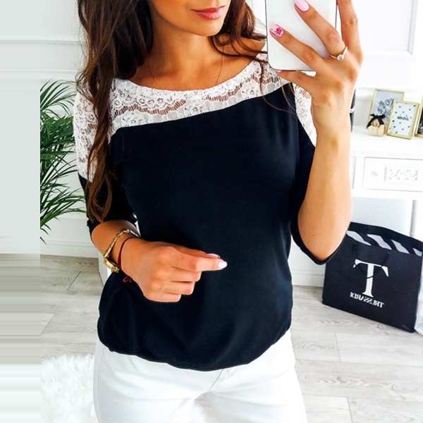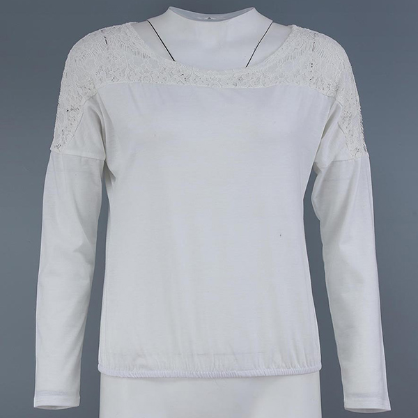 This long sleeve top feature a fitted silhouette, a round neckline, long sleeve, sheer crochet lace trim spliced design,