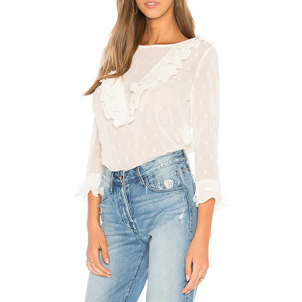 My girl,you would possess a charming look with this shirt.It in a polyester weave with broderie anglaise,
